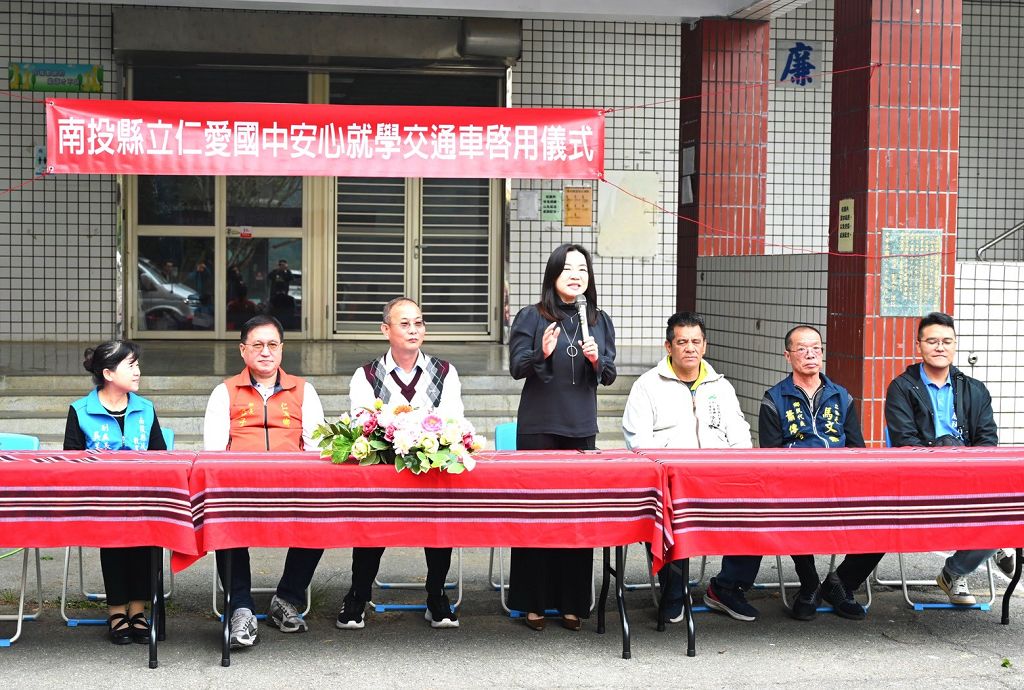 南投縣仁愛國中今(5)日下午舉行「住宿生安心就學交通車啟用儀式」,由立法委員馬文君協調教育部國教署,成功爭取 90 萬元交通車租用經費,協助偏鄉孩子擁有更安全、穩定的通學環境。儀式由教育處副處長、仁愛鄉長江子信、鄉代會主席洪文全、縣議員林庭秝,以及仁愛國中師生共同出席。