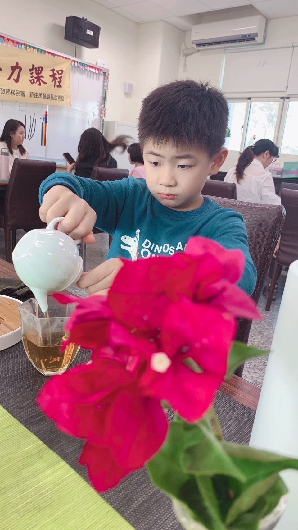 今年他們更向新住民發展基金申請「小小茶師培力課程」,小小的身影、大大的專注,不同風格茶席、不同手法沖泡,彷彿不同文化融合及交流,也意味新住民二代傳承與延續。
