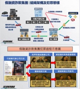 經鎖定發現該融資公司與 5家關係企業形成完整詐欺鏈,並由三○幫幹部吳姓男子居中操控。