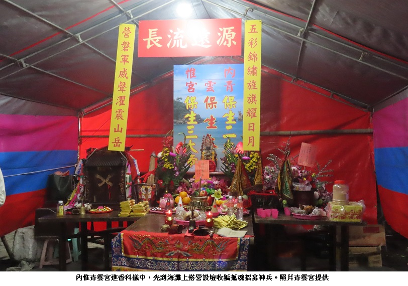 波新聞─陳金聲/高雄高雄市鼓山內惟青雲宮 (俗稱老祖廟),十二月二十日深夜,在三十六間友宮出陣「襄贊神威」下,帶著信眾及昔日桃子園的後世子弟上千人,浩浩蕩蕩的重返左營軍區的海灘謁祖進香請火。高雄市宮廟成千上萬,唯獨鼓山青雲宮及左營新庄仔青雲宮這兩間宮廟享有到軍區海灘進香的殊榮。內惟青雲宮及新庄仔青雲宮,都供奉保生大帝,祂們的「祖廟」是在現今左營軍區的「桃子園營區」內,是兄弟廟。民國二十八年因為原居地桃子園聚落被日本政府劃入海軍用地而遷村,整個桃子園聚落的居民及「青雲宮」全部遷離。這是高雄市遷村史上的濫殤。桃子園居民遷村後,被配置到鼓山內惟地區及左營新庄仔地區,原聚落內的青雲宮也一分為二,分別在內惟及新庄仔各興建一間青雲宮。桃子園青雲宮遷離桃子園,距今已經八十六年,「少小離家老大回」,這八十六年來,內惟青雲宮只重返原居地三次。第一次是在民國八十八年,第二次是九十九年,今年這一次是第三次。新庄仔青雲宮也曾重返一次。青雲宮的保生大帝及桃子園居民的後世代,每次要重返原居地,都得向海軍單位層層申請才能成行。二十日深夜這一次,也不例外。好在軍民雙方充分展現「軍愛民、民敬軍」的正向思維,才能兼顧國防安全及宗教信仰,共同完成這項莊嚴神聖的慶典。海軍單位這一次,在國防安全優先的考量下,充分尊重民間宗教信仰,協助規劃動線及後勤支援、提供謁祖進香所需的空間,讓進到軍區海灘進香的信眾們非常的感謝。內惟青雲宮這場謁祖進香請火大典,總計有三十六間的「友宮友廟」,出動43尊主祀神尊、大轎、宋江陣、舞龍、舞獅等陣頭襄贊神威,桃子園的後世代也踴躍投入這場進香盛會,估計約有上千人參與。出動的轎車、載運神轎的貨車及載人的大小客車多達一百輛,軍方基於安全而採取「全部搭車團進團出」的限制,眾神轎及信眾也都百分百配合,沒人徒步或騎機車進出。進香陣容二十日深夜抵達謁祖進香的海灘後,隨即進行相關的宗教科儀,一直到清晨五時十分,完成「進香請火」後,大隊人馬非常自律一輛接一輛的團出,完全沒造成軍方管制上的困擾。所謂的大隊「人馬」是真的有馬參加,青雲宮為了完成「進香請火」的科儀,還特別從虎頭埤馬場租來七匹駿馬,用卡車載到海邊參與盛會,這七匹駿馬背上都披掛令旗,每匹都代表一個職務,如先鋒王馬、玉旨王馬等,這種場面在一般的宗教活動比較少見。襄贊神威的友宮神轎及神尊,可能太嗨了,在海灘上「衝進衝出」,廟方怕影響到軍區內的作息,不停的喊著「歡喜就好,放卡輕駕」。「請火」是整個科儀的壓軸,火光在法師施法下瞬間燃起,劃破海灘上寂靜的夜空,場面震撼。「奉旨」負責「挑香擔」的值年爐主林福祥,在法師完成請火把香火放入爐內後,隨即率先離開營區,以最快的速度在大約十五分鐘內將香火送回青雲宮內等待後續的「合爐」儀式。進香隊伍二十一日清晨離開軍區後,還到左營新庄仔地區及鼓山內惟地區遶境,直到晚間才完成全部的科儀。所有的參與人員及轎班、宋江陣頭,從深夜到清晨在沙灘上舞弄,腳力比走平地還吃重,但沒人喊累,都以能參加這場盛會為榮。內惟青雲宮主委黃永斌如釋重負的表示,這是一項「源遠流長」的宗教盛事,他是老祖保生大帝的爐下弟子,一切都奉老祖的「旨示」辦理,非常感謝友宮襄贊神威及廟方所有人員的全力投入,特別是軍方的諸多協助,出動舞獅迎駕,並經神明囑意挑選屬龍屬虎的軍官擔任「招軍旗」的插旗、拔旗科儀項目。這一次距上次相隔十五年,未來何年才會再重返原居地謁祖進香,「凡事因緣和合,這不是誰說了算,而是老祖說了才算」。「進香請火」是台灣道教信仰中廟宇神明在進香或遶境時,於山林、水邊舉行的一種重要儀式,藉此收編孤魂,防止其作亂,讓他們成為神明的兵力,既補充神明兵力,也藉此鞏固神權與地方安寧。進香科儀都會先前往溪邊、海邊、山邊等特定地點搭「行營」供神明坐鎮及豎「招軍旗」數天,用以部署「招兵買馬」事宜。至於「請火」,有兩種解釋:一是作為「信號」,表示招軍任務完成,二是恭請負責招軍的神明靈力進入香爐,再將香灰帶回廟中合爐,象徵香火與靈力轉給廟中主神全權指揮與傳承。「進香請火」多數是進香過程中的一環,如到海邊舉行就稱為「刈水火」、如到山區舉行則稱為「刈山火」,這在高屏地區尤為盛行。這些科儀,通常在卯時(清晨五至七時)或午時進行,卯時請火則需徹夜忙碌。法師或童乩拔起「招軍旗」後,會先下水、入林與孤魂交流溝通,然後快速進行請火儀式,全部過程不到一刻間。進香請火是廟宇文化中的一項特殊科儀,透過儀式與神鬼互動,安撫孤魂、使之成為神兵,保境安民,達成增強神明兵力的重要科儀。