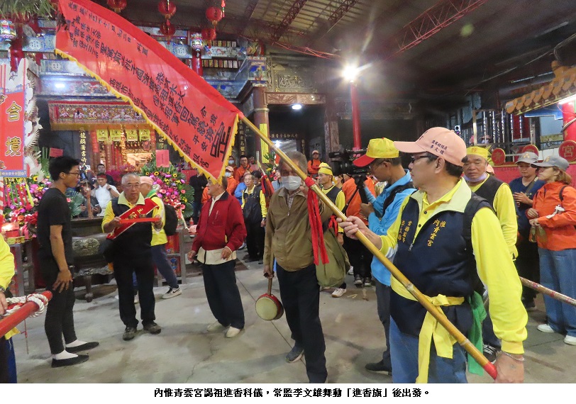 內惟青雲宮主委黃永斌如釋重負的表示,這是一項「源遠流長」的宗教盛事,他是老祖保生大帝的爐下弟子,一切都奉老祖的「旨示」辦理,非常感謝友宮襄贊神威及廟方所有人員的全力投入,特別是軍方的諸多協助,出動舞獅迎駕,並經神明囑意挑選屬龍屬虎的軍官擔任「招軍旗」的插旗、拔旗科儀項目。這一次距上次相隔十五年,未來何年才會再重返原居地謁祖進香,「凡事因緣和合,這不是誰說了算,而是老祖說了才算」。