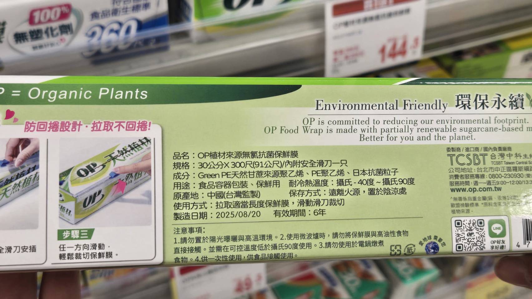 OP 天然植材來源保鮮膜系列各大通路陸續上架,全聯通路獨家販售300尺抗菌版本,買1送1平均一件145元,為日常料理帶來更安心的使用體驗。(上架訊息及促銷內容以各通路公告為主。)
