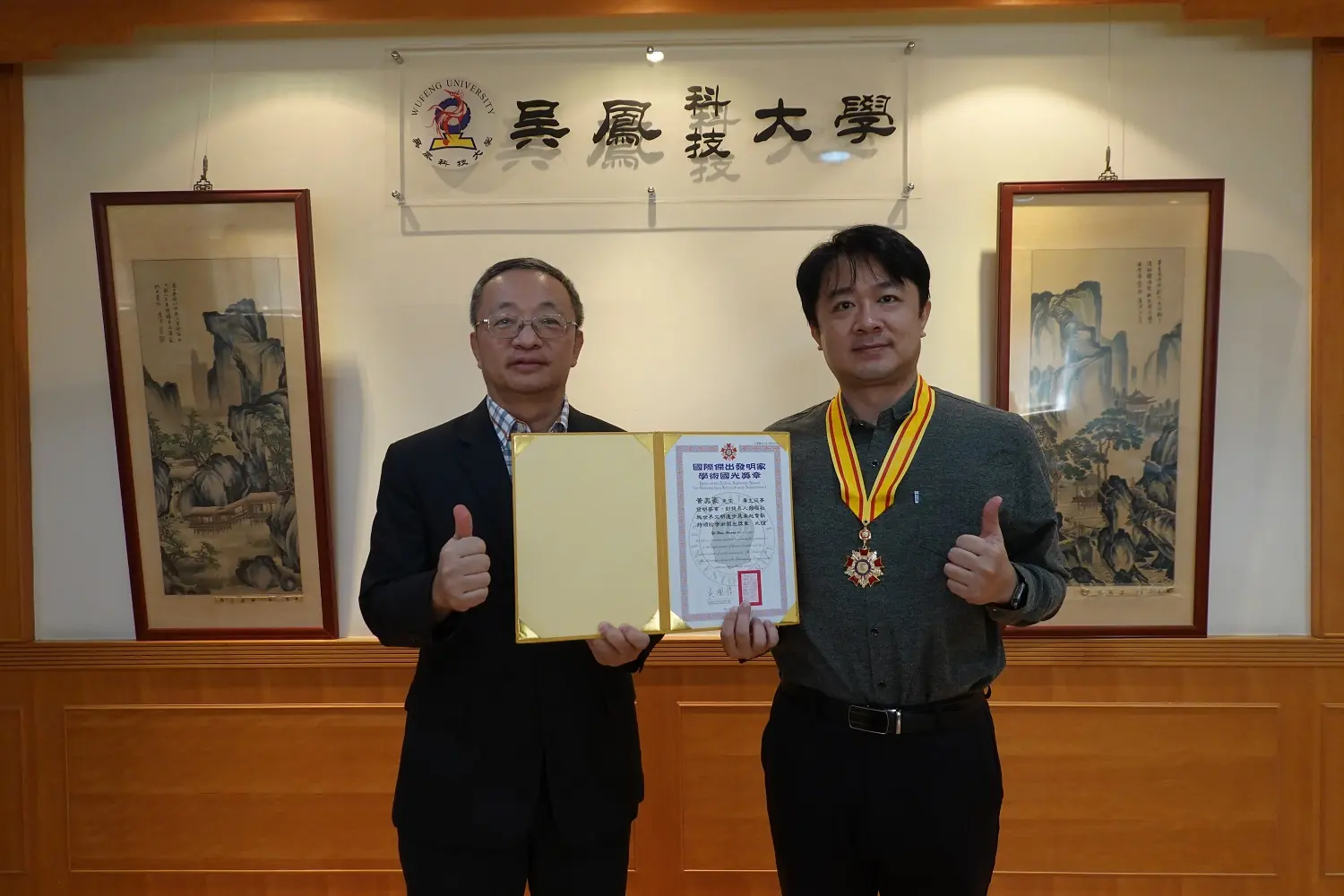 ▲吳鳳科大校長蔡宏榮 (左)及消防系副教授黃奕豪 (右)。(圖/吳鳳科大提供)