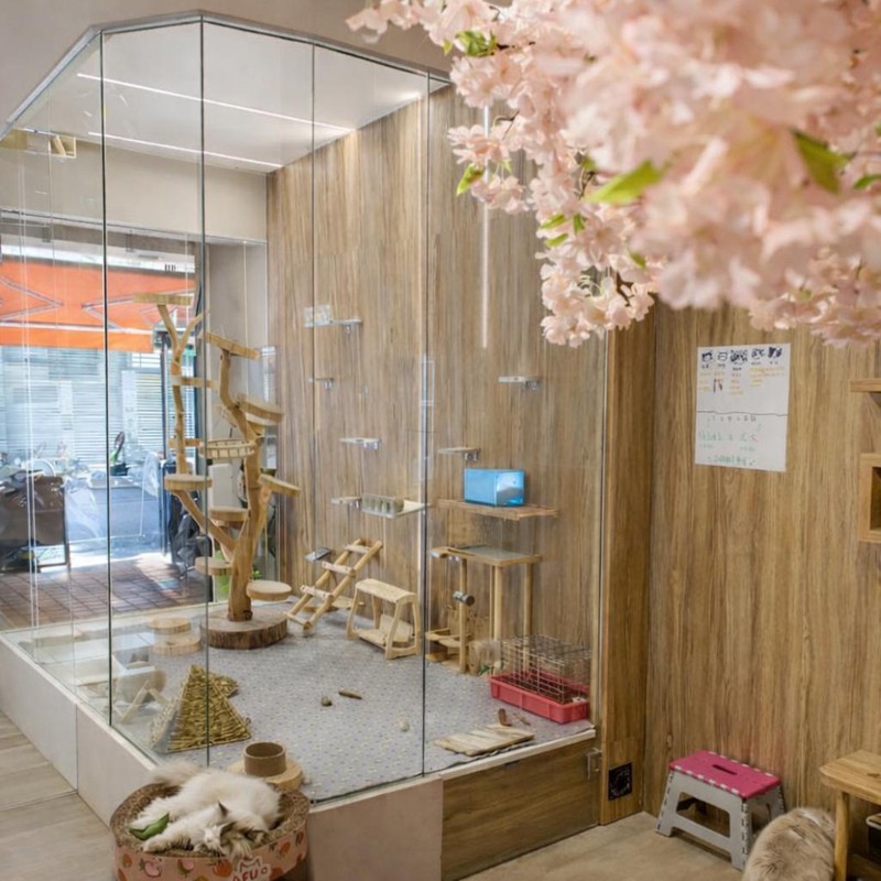 A:為了讓龍貓與貓咪能自在生活,《朵朵茶》採用玻璃隔間的觀賞方式。顧客可以透過觀察,看見動物最自然的模樣,這樣的設計也是《朵朵茶》作為台中龍貓主題飲料店的重要理念,強調人與動物之間保有剛剛好的距離。
