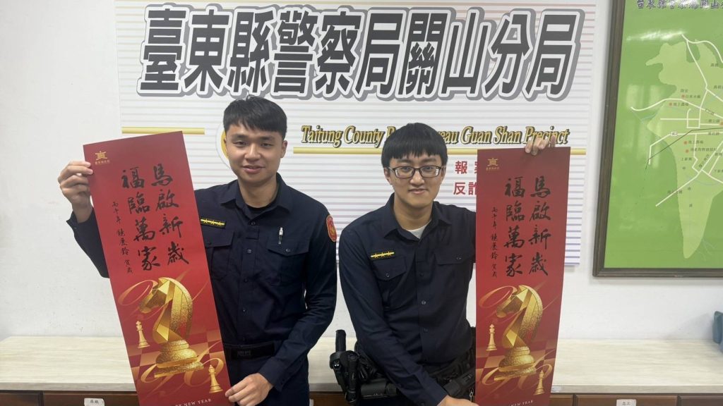 臺東縣警察局表示,縣長所致贈之春聯,由警察局統籌分送所屬臺東、關山、大武及成功等四個分局。其中,關山警察分局於接獲春聯後,立即完成分送作業,轉發予轄內各分駐(派出)所,並張貼於各所門首(口)及洽公民眾可清楚看見之明顯位置,讓新春祝福成為分局及各分駐(派出)所迎接民眾的第一道風景,營造警民互動溫馨氛圍。關山警察分局指出,轄區涵蓋多個鄉鎮及原鄉部落,春節期間返鄉人潮與旅遊車流將明顯增加,於期前,分局將依轄區特性及歷年經驗,周延規劃春節加強勤務,全面動員所屬各分駐(派出)所警力,落實治安巡邏、交通疏導及為民服務等工作,確保各鄉鎮在年節期間治安平穩、交通順暢。此外,也同步結合春節勤務,持續向民眾宣導防詐騙及交通安全觀念,提醒慎防假投資、假檢警及網路交友等詐騙手法,並呼籲民眾遵守交通規則,共同維護安全的生活環境。