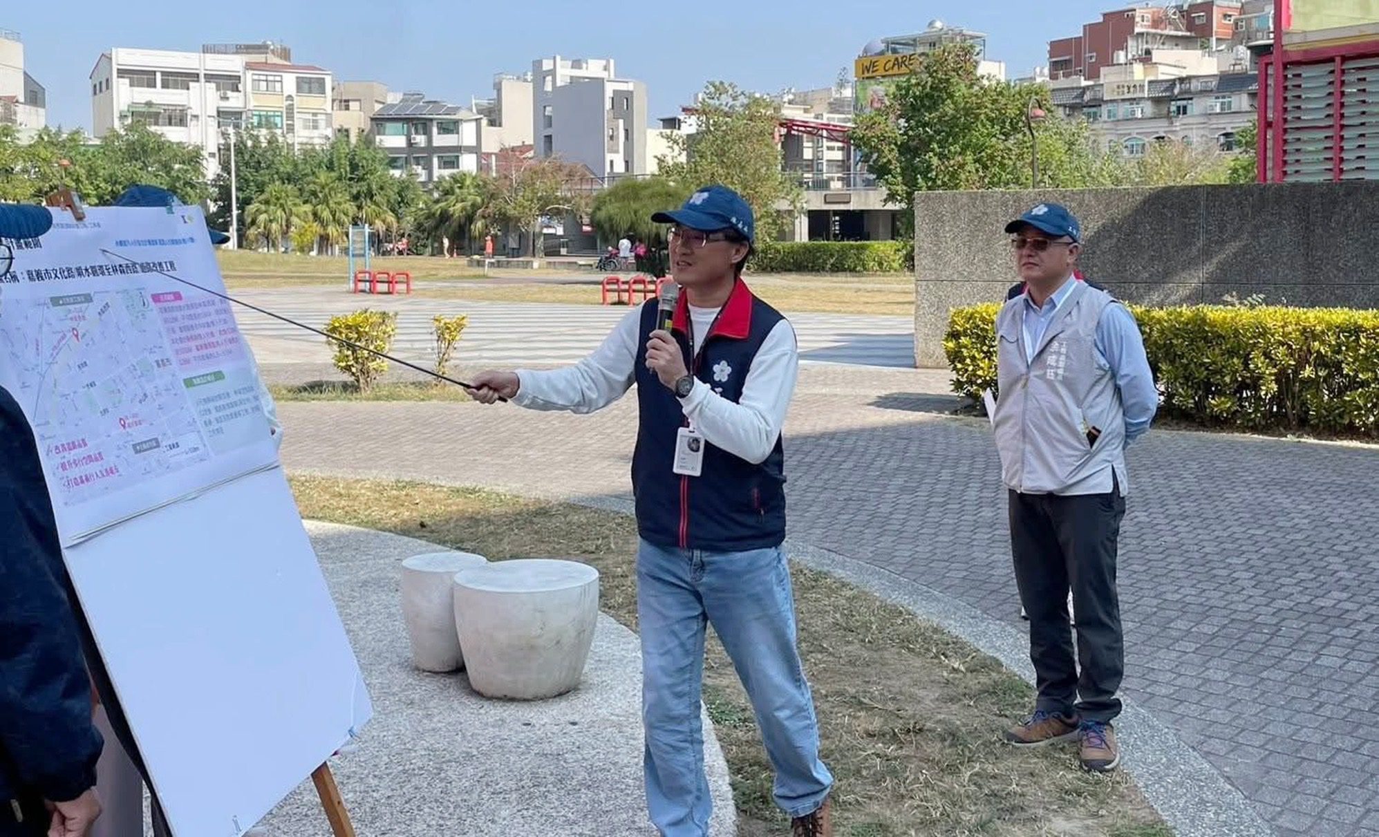立法院內政委員會王美惠委員偕同內政部政務次長董建宏、國土管理署長吳欣修等人,於審議前現地考察嘉義市政府本次提案之志航國小西側門增設人行步道工程、文化路(噴水圓環至林森西路)道路改善工程及民權路(啟明路)至民權東路人行道改善工程等3案內容,嘉義市政府由工務處余成鈺副處長率隊簡報說明改善內容,中央原則全部支持予以補助。