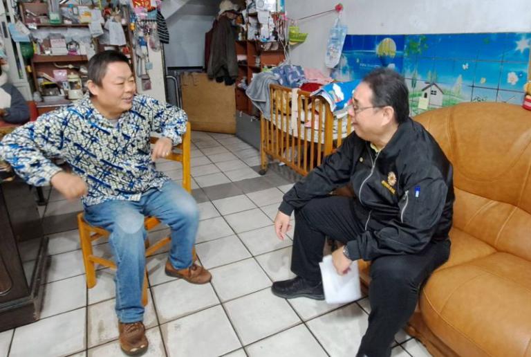 ▲鞠宗顯處長關懷訪視因公傷殘退除役官兵彭姓榮民生活及健康狀況。 (圖/記者蔣彤雲攝)