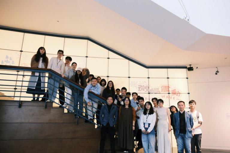 ▲應藝所參展師生合照。(圖/記者蔣彤雲攝)