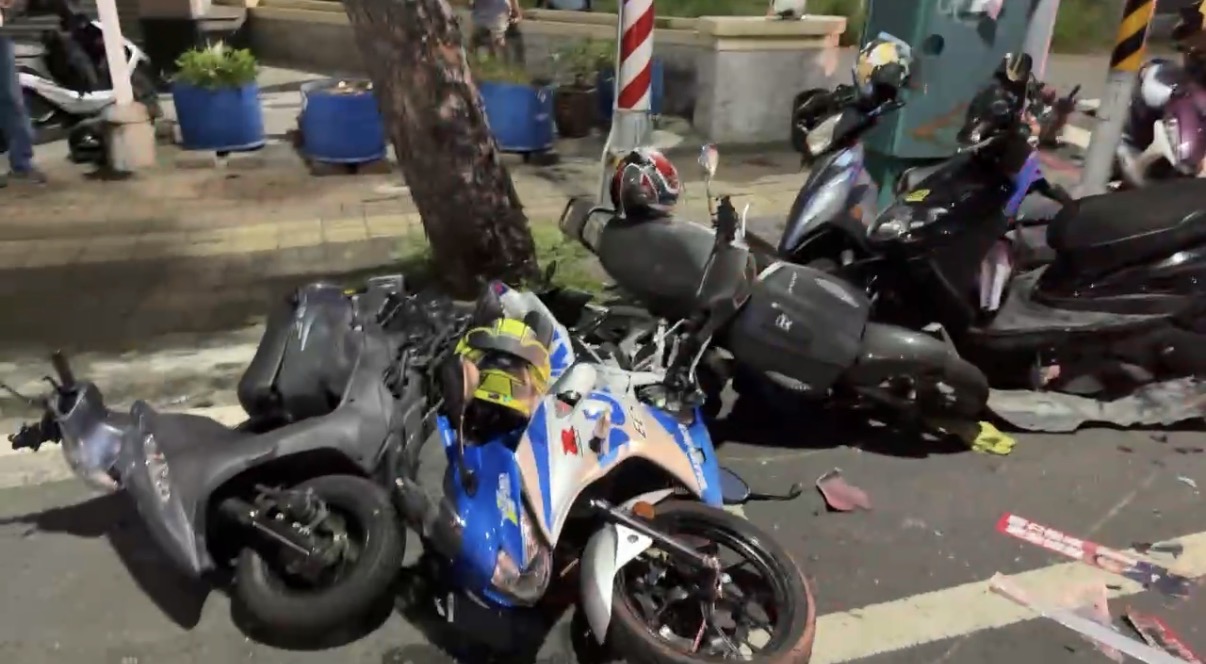 據悉,當時駕駛撞機車後,直接衝撞待轉區的民眾,造成「全倒」,甚至還有一名騎士腿部遭輾過。
