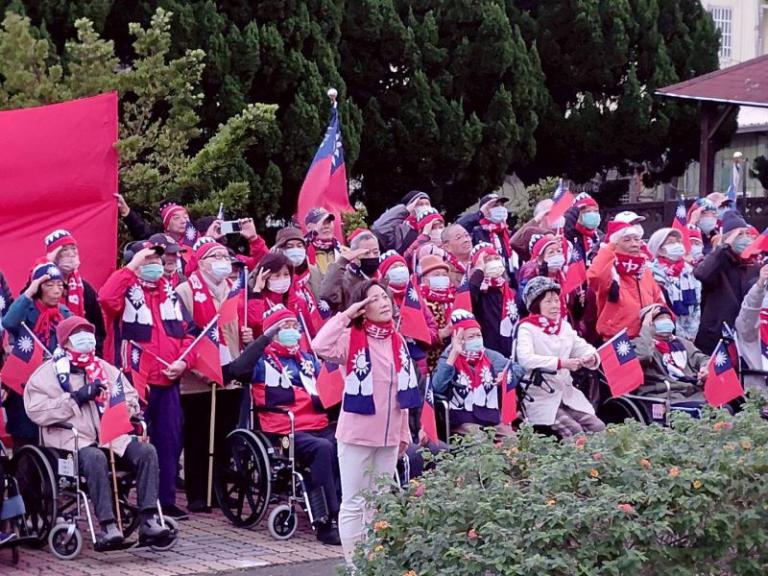 典禮中,高齡 95 歲的住民王伯伯興奮表示,每年最期待的就是元旦升旗,雖然氣溫寒冷,但披上這條國旗圍巾唱國歌,心裡就暖烘烘的,彷彿回到了當年保家衛國的戎馬歲月。