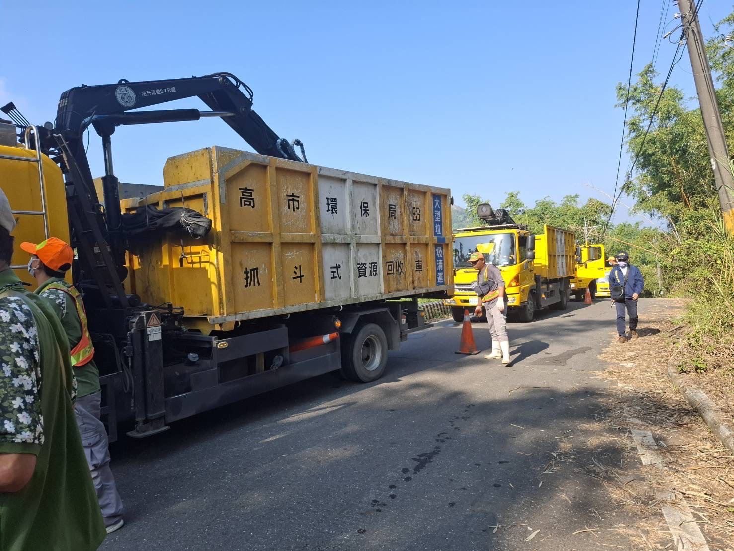 環保局接獲檢舉,指出燕巢區金山往中寮之埤底巷周邊疑遭傾倒家用垃圾,立即派員稽查,於月世界山坡地可見大量生活廢棄物堆置,經破袋檢查發現爲台南等地區垃圾,嚴重影響環境品質。本局今日(11/17)立即調派燕巢等7個區隊13部車輛到場清理,並向鄰近民宅調閱監視器,警察局協助偵辦,以掌握可疑車輛動向,全力追查不法來源,後續將依違反廢清法第46條刑責規定,移送法辦。
