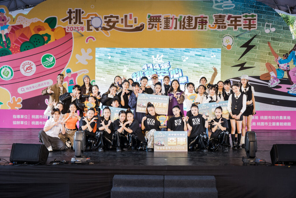 在國中小幼兒組部分,由「同德國中-Break the Smoke」以充滿張力的編舞與強烈主題意識榮獲冠軍,同時也奪下「決賽魅力王」雙料獎項,展現堅定拒菸決心與舞台魅力;「DFC」以俐落動作與整齊劃一的團隊默契獲得亞軍;而「AngeLaBoNiKo」則以青春可愛的演出風格拿下季軍,以童趣詮釋「吃得安心」的健康理念。