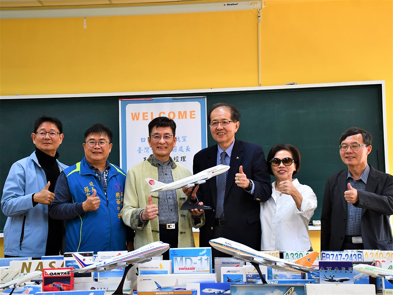 捐贈儀式訂於1/5日下午假興華中學觀光旅遊專科教室舉行,王富民總經理夫婦親自蒞臨興華中學,將珍貴的民航模型機正式移交捐于興華中學,校方亦以隆重的儀式迎接這批極富意義的教具教材與展示模型機,並表達誠摯感謝。
