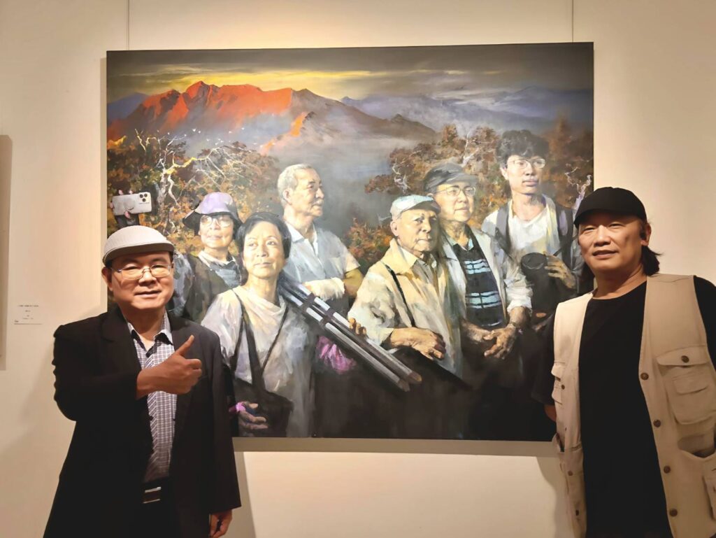《圖說》陳立人2025年油畫〈我與靑山是舊遊〉,前文化部政務次長林金田(左)亦是畫中人物。