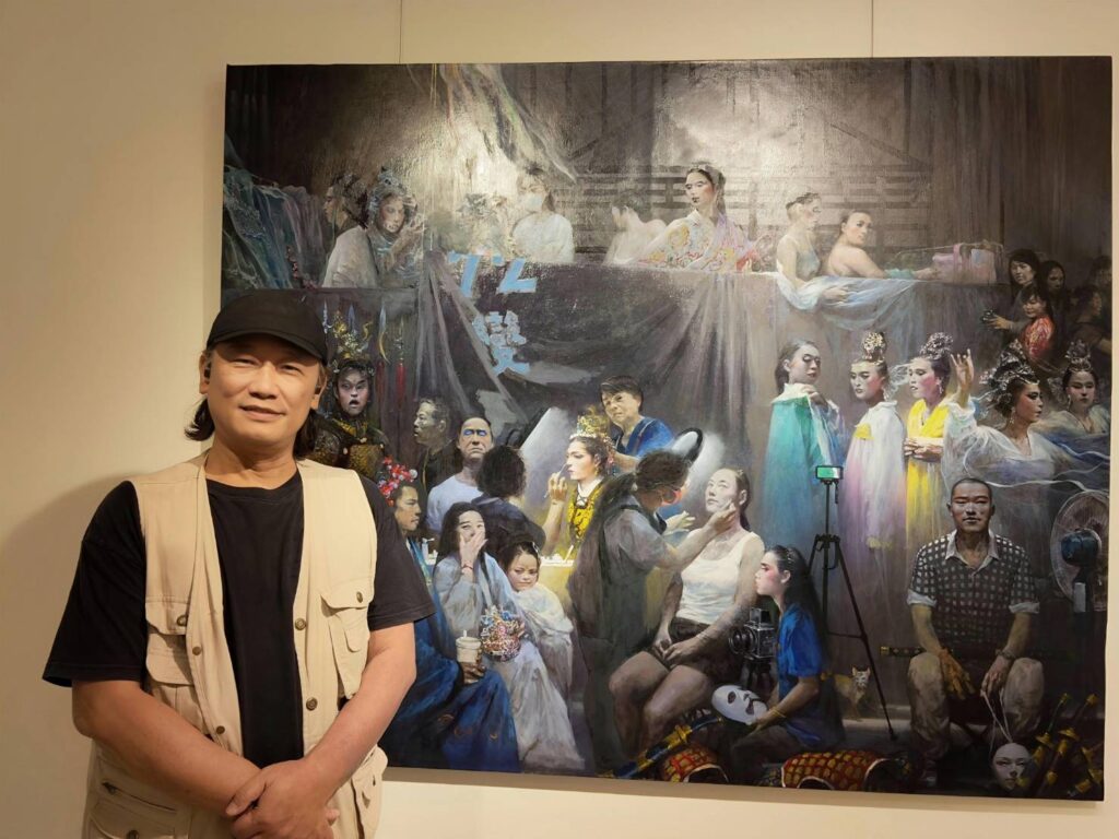 《圖說》陳立人2025年油畫〈試春服—北港藝閣幕後〉。