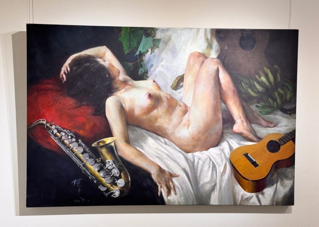《圖說》陳立人祼女油畫〈盛夏的樂章〉。