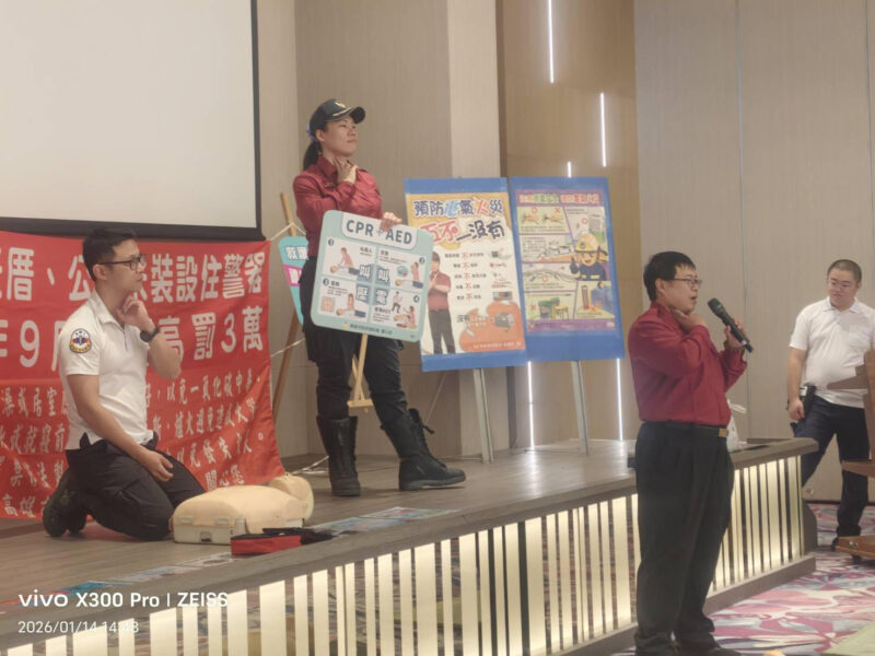 【News586/總社長孫崇文報導】 為提升旅遊業住房的防火防災意識,中華消防分隊與萬豪酒店共同舉辦防火宣導活動,透過專業講解與實務操作,向參與人員宣導電氣使用安全、鋰電池安全觀念,並結合 CPR 及 AED 急救教學,讓防災知識不只「聽得到」,更能「做得到」。 本次活動由中華消防分隊人員進行宣導,針對飯店工作環境與日常生活中常見的用電風險,提醒正確設備檢查重點與用電習慣,同時說明鋰電池在充電、存放及使用上的安全注意事項,降低因不當使用所引發的火災風險。消防人員也透過實際案例分享,加深參與人員對火災預防重要性的認識。 除防火宣導外,活動特別安排 CPR 及 AED 實作教學,讓參與人員在專業指導下親自操作,學習正確的急救流程與設備使用方式,提升面對突發緊急狀況時的應變能力。透過「做中學」的方式,讓急救知識更容易記憶與應用。 中華消防分隊表示,防火防災不僅是消防單位的責任,更需要企業與民眾共同參與。感謝萬豪酒店對公共安全議題的重視與支持,提供良好的宣導環境,讓防災觀念得以向下扎根、向外擴散,不僅能強化內部安全管理,也能展現企業對社會責任的重視。 Continue Reading