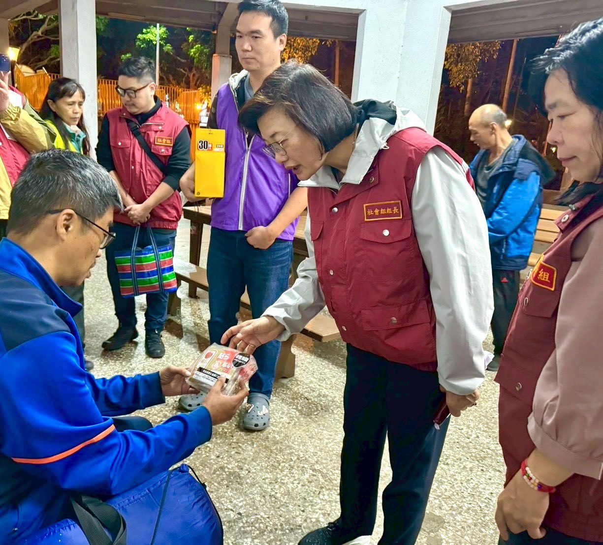 中央氣象署預報,受輻射冷卻影響,近日早晚溫差大,且自週三(17日)起東北季風增強、北部水氣增加。為關懷新北市街友及獨居長者,新北市政府提前啟動低溫關懷行動,由社會局長李美珍率領社會局街友外展服務中心、消防單位及志工團隊,前往板橋區介壽公園及玫瑰公園,慰問露宿街友,並發放暖暖包與禦寒物資。 新北市街友外展服務中心自入冬以來,已持續深入轄區內各街友露宿地點進行關懷訪視,提供禦寒物資,並加強宣導避寒與安置機制。街友阿發分享,每週都有志工前來關心,平日也有外展中心社工與區公所人員定期訪視,還能使用洗澡車服務,讓他感受到滿滿的關懷與支持。 在獨居長者關懷方面,李美珍表示,市府已動員各區公所、里長及志工團隊,主動以電話或到宅方式關心長輩近況,提供禦寒與保健資訊,並提醒使用保暖設備與熱水器時應注意電線安全及室內通風,避免一氧化碳中毒。如遇緊急狀況,長者可透過緊急救援系統通報中興保全或撥打119尋求協助。 李美珍也強調,低溫期間是街友、獨居長者及弱勢家庭最需要關懷的時刻,社會局提前部署,除發放禦寒物資外,也積極結合警察局及各場地管理單位,勸導個案接受安置服務;各區公所並透過電子看板、臉書等網路社群平台發布低溫關懷與防寒資訊。社會局同時呼籲民眾,如發現需要協助的街友,可撥打1999市民服務專線或2956-0095通報新北市街友外展服務中心,將有專人即時提供協助。