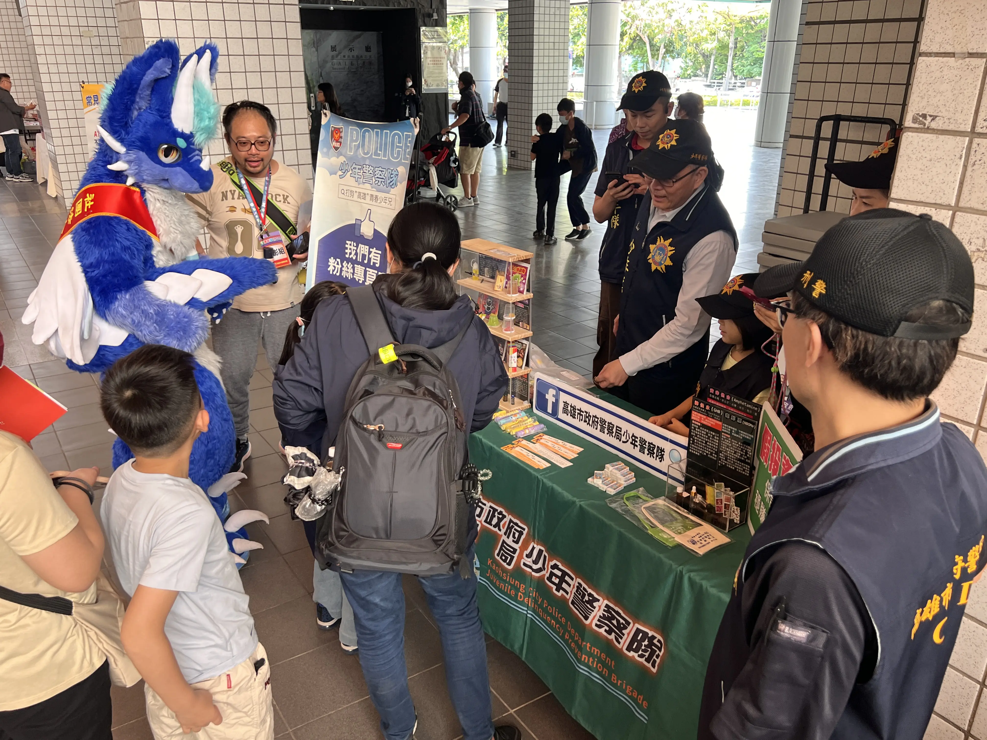 值得一提的是,在正式演出開始前,下午1時至3時,高雄市少年隊與高雄市毒防局便已先行在演藝廳外設置反詐宣導、反毒宣導「行動教室」,讓大小朋友在進場前就先展開一場寓教於樂的暖身互動。