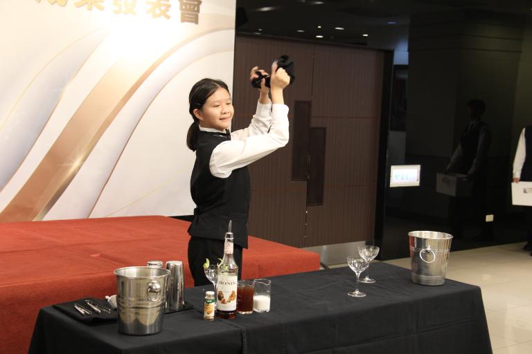 ▲年僅15歲蕭苡晴穩健台風贏得無酒精傳統調飲組金牌。(圖/高餐大提供)