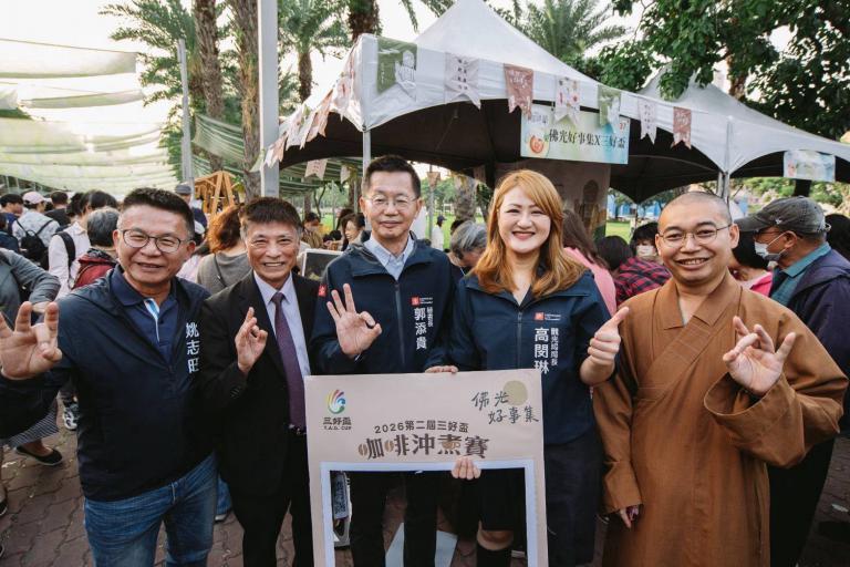 ▲佛光山也到場設攤,宣傳2026第二屆「三好盃咖啡沖9煮賽」。(圖/鍾尚軒)