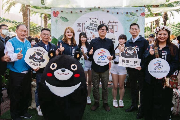 全台咖啡迷看過來!第二屆「2025高雄咖啡節」今(22)日於凹子底森林公園盛大登場。 安排60攤精品咖啡與特色甜點品牌,並精心規劃金牌大師講座、咖啡體驗及食農教育等豐富活動,完整展現高雄咖啡產業從產地到都會的多元風貌,現場咖啡香氣四溢,首日即吸引超過3萬人聞香朝聖。開幕儀式由充滿原民熱情的六龜區「尿布樂團」開場,並由高雄市政府郭添貴秘書長、與會來賓、觀光大使高雄熊及台鋼雄鷹啦啦隊 Wing Stars等,熱鬧揭開活動序幕。而市長陳其邁更聞香而來,驚喜現身咖啡市集,親自體驗香醇的原鄉精品咖啡,並熱情歡迎海內外遊客及演唱會歌迷粉絲,把握這難得的機會,感受高雄的暖冬咖啡浪漫。
