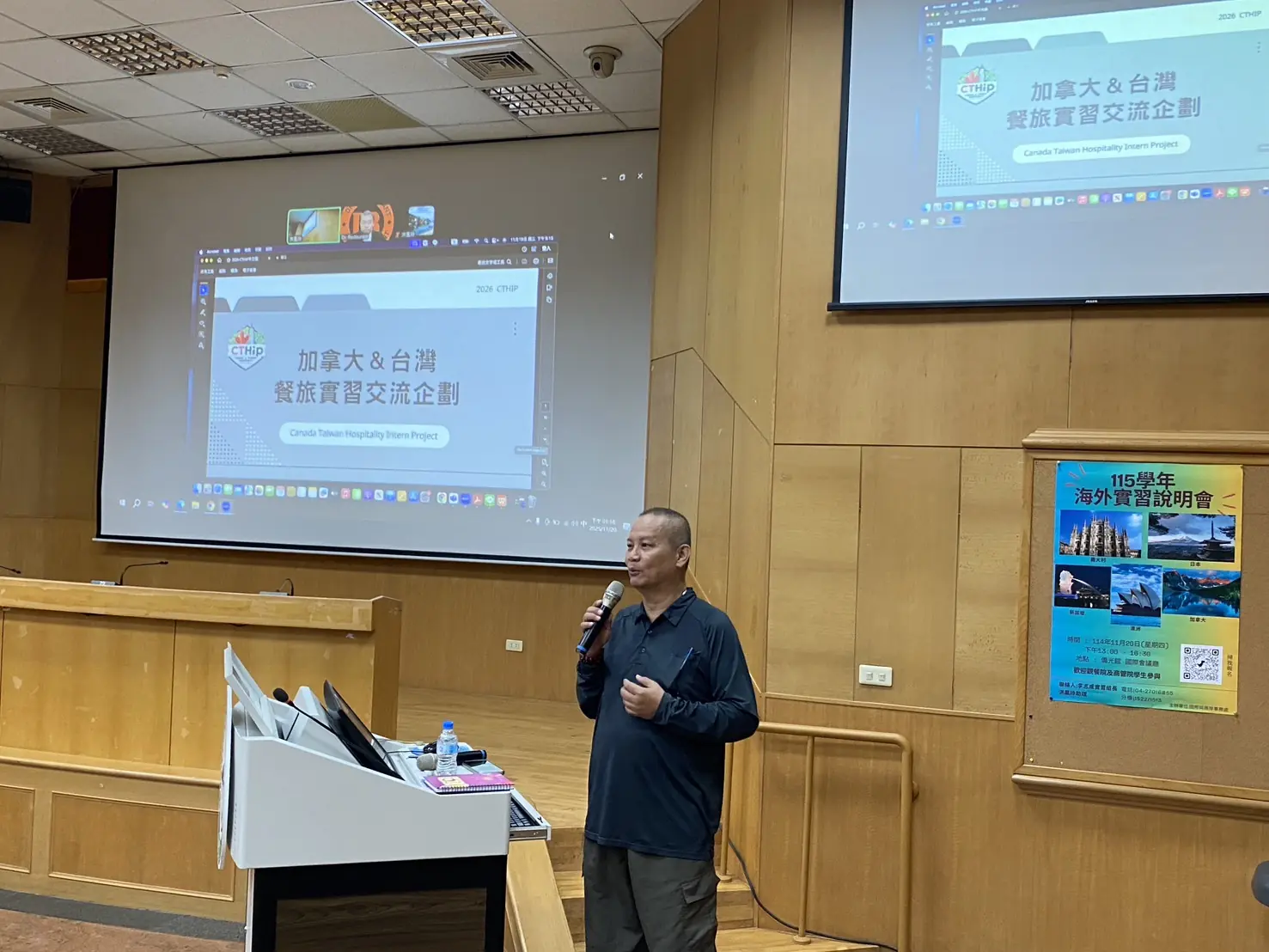 說明會中,國際處首先介紹海外實習的核心精神,強調學生在國際職場中可培養語言能力、獨立工作態度、專業實作技巧與跨文化溝通能力。透過到義大利的藝術文化產業、日本旅遊與服務業、新加坡飯店業、澳洲觀光休閒領域、加拿大多元產業等場域實習,學生能在真實環境中接觸最新產業趨勢,累積職涯競爭力。