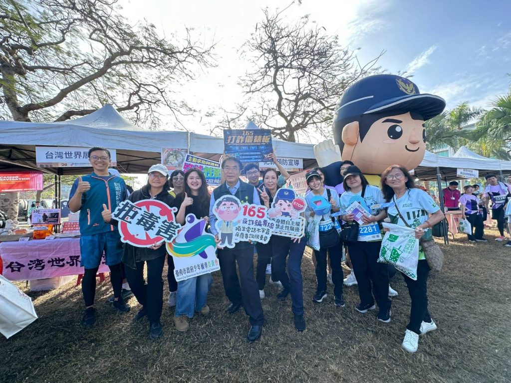 臺南運動盛事「2026古都國際半程馬拉松」持續吸引來自各地的馬拉松路跑愛好者熱情參加,今(115)年20週年賽事報名人數逾2萬5千餘人,全體跑者於今(1)日清晨在臺南市政府永華市政中心前鳴槍起跑。臺南市政府警察局除了執行賽事路線的交通疏導及管制任務外,也出動可愛的大型警察寶寶到場為跑者們加油打氣。市警局也在現場設置犯罪預防宣導攤位,宣導防詐反毒、交通安全、婦幼安全等議題,並特別設計防詐趣味互動及有獎徵答遊戲,積極提升民眾自我保護意識及防詐知能。