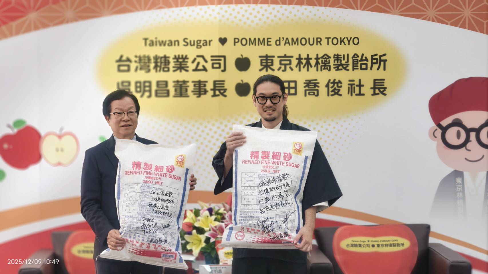 台糖為表達謝意並深化雙方的情誼,特別訂製了1組Q版池田社長造型積木、台糖糖包造型一卡通,以及台糖經典砂糖禮盒當「歐咪雅給」(音似「伴手禮」的日文おみやげ)。池田社長則當場熬煮起台糖砂糖,手工製作「台糖NO.1蘋果糖」當回贈禮。在此會面之後雙方也將更進一步討論合作模式,期許未來能將台糖百年傳承的糖業工藝,結合池田社長的職人創意,共同將臺灣特有的蔗香風味推向國際甜點界,讓更多人有機會品嚐到臺灣限定的正宗美味,以打造新一代的甜蜜傳奇。