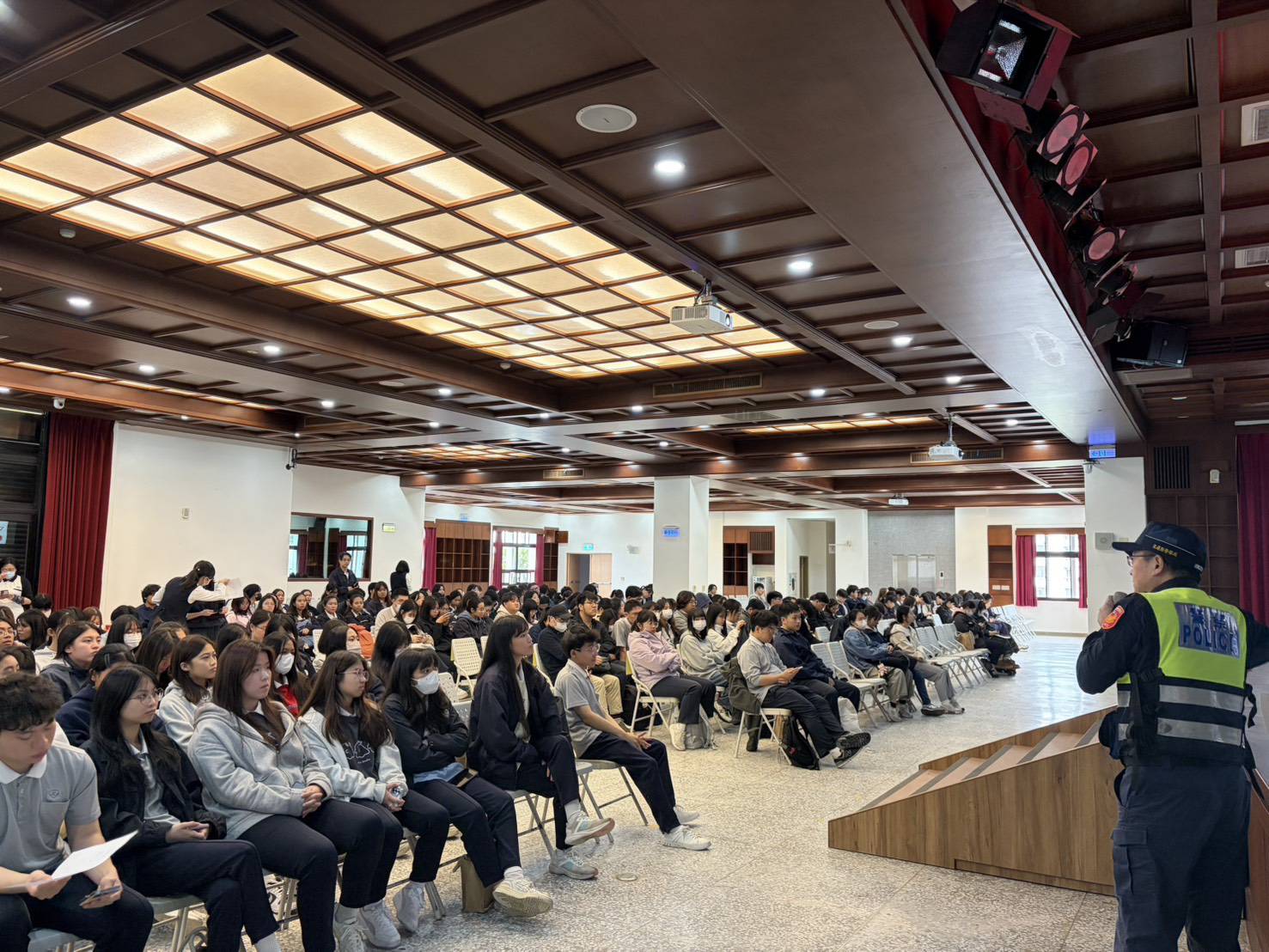 宣導活動中,警方首先針對交通安全進行重點提示,特別強調「防禦駕駛」的重要性,提醒學生在校園周邊及十字路口應落實「慢、看、停」。隨後,針對近期層出不窮的詐騙手法,如「虛擬貨幣投資」、「解除分期付款」及「假冒網拍客服」等案例進行解析。