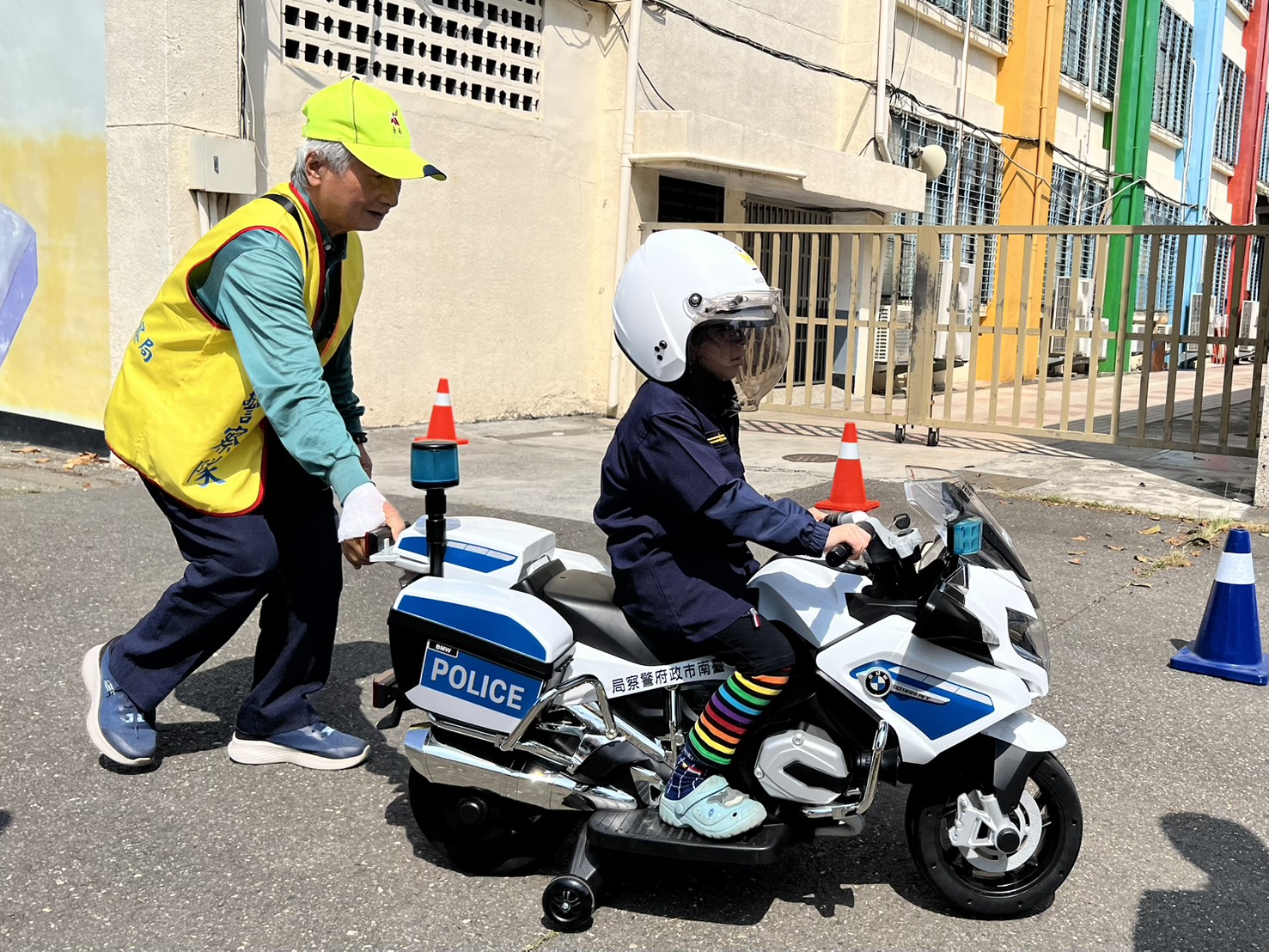 活動現場最受矚目的焦點,莫過於婦幼警察隊特別支援的迷你版「重型警用機車」。小朋友們穿上Q版警察制服、戴上安全帽,帥氣地騎乘小機車模擬執勤,實地體驗警察工作,超萌模樣讓家長紛紛拿起手機捕捉珍貴畫面。透過實際的操作,交通警察同步進行交通安全宣導,加強孩子們路口「慢、看、停」的安全觀念。