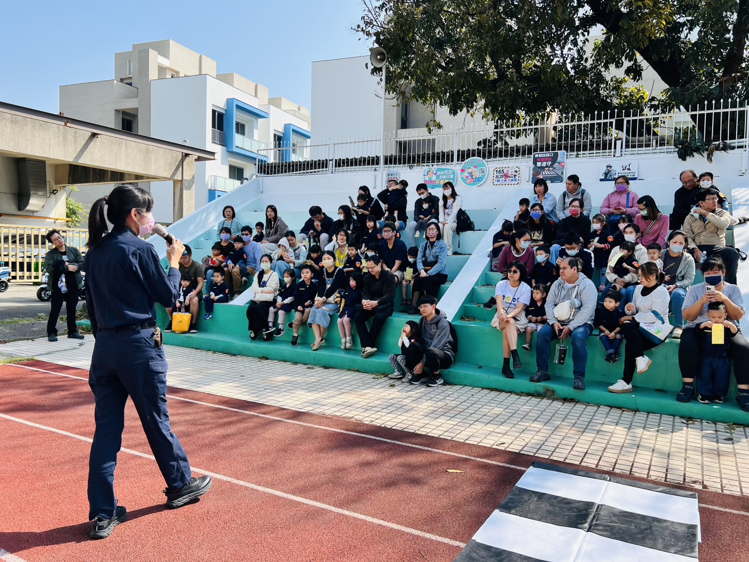 除了交通安全,活動核心更聚焦於「婦幼人身安全保護」。婦幼警察以生動、淺顯易懂的語言,引導孩子認識身體自主權,學習當遇到危險或陌生人靠近時,應如何大聲呼救並尋求幫助。