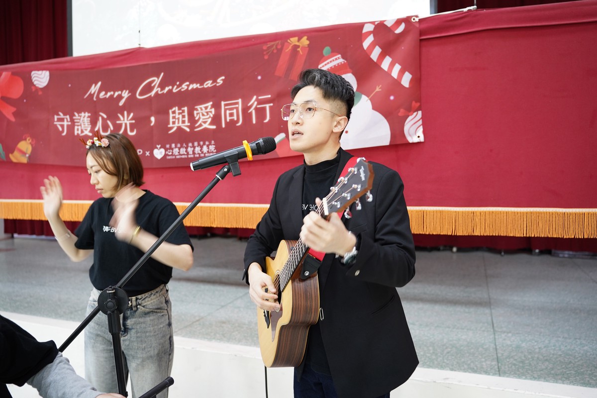 岑怡亨於心燈啟智教養院現場自彈自唱吉他,為院生演奏〈聖誕鈴聲〉與〈平安夜〉,以音樂陪伴院生度過溫馨的聖誕時光。