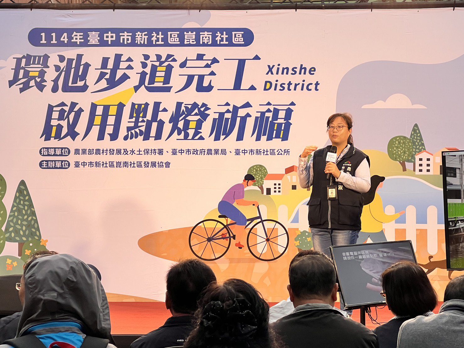 台中市新社區崑南社區發展協會獲「114年農村再生執行計畫」補助辦理環池步道改善工程,由台中市政府農業局委託新社區公所執行。工程今年順利完工,並於昨(13)日下午在崑南社區活動中心舉行「完工啟用暨點燈祈福典禮」,象徵社區環境再升級,為地方帶來更安全、舒適與友善的生活空間。