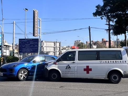 彰化救護車載病患執勤途中遭保時捷攔腰擊中 所幸無人重傷.(圖/翻攝 彰化縣媒體記者協會 臉書)