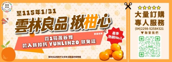 第三重:只要購買一箱茂谷柑,輸入折扣碼YUNLIN20就幫你免運傳達心意。