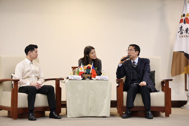 台南市長黃偉哲於今年一月訪菲時,曾拜訪姊妹市加美地(Cavite)市,當時適逢該市市長Denver Chua出國,由副市長Benzen Raleigh Rusit代表接待,雙方皆表達加深交流與合作意願。今(11)日,Denver Chua市長特地率副市長、市議員等一行17人回訪台南,並在馬尼拉經濟文化辦事處高雄分處代理處長游博皓(Francis Albert D. Eugenio)及大亞電纜菲律賓代理商吳書劍的陪同下,蒞臨南市府拜會黃偉哲市長。